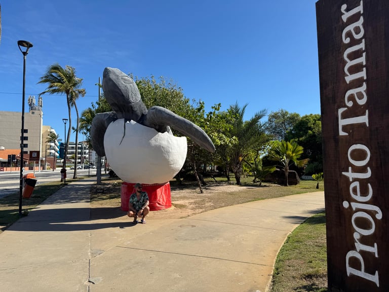 Após nos instalarmos, seguimos direto para uma das atrações mais importantes da região: o Projeto Tamar. Ali, pudemos conhecer de perto o trabalho de preservação das tartarugas marinhas e observar esses animais encantadores em tanques e áreas de visitação. Foi uma recepção emocionante, com muito aprendizado e contato com a natureza.