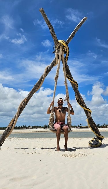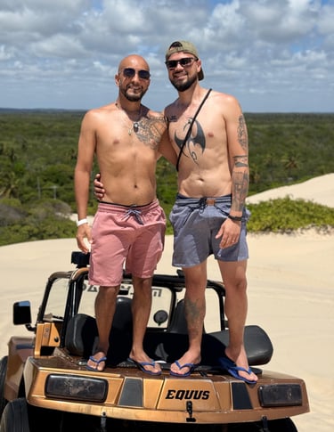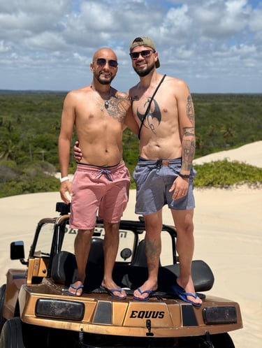 Já na praia, embarcamos em um empolgante passeio de buggy pelas dunas, que misturou adrenalina, vento no rosto e paisagens espetaculares. Para encerrar, fizemos a travessia até a Ilha da Sogra, um pedacinho de paraíso de águas cristalinas, perfeito para relaxar antes do retorno.