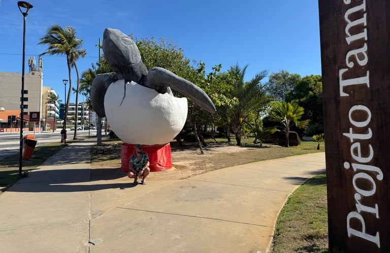 Após nos instalarmos, seguimos direto para uma das atrações mais importantes da região: o Projeto Tamar. Ali, pudemos conhecer de perto o trabalho de preservação das tartarugas marinhas e observar esses animais encantadores em tanques e áreas de visitação. Foi uma recepção emocionante, com muito aprendizado e contato com a natureza.