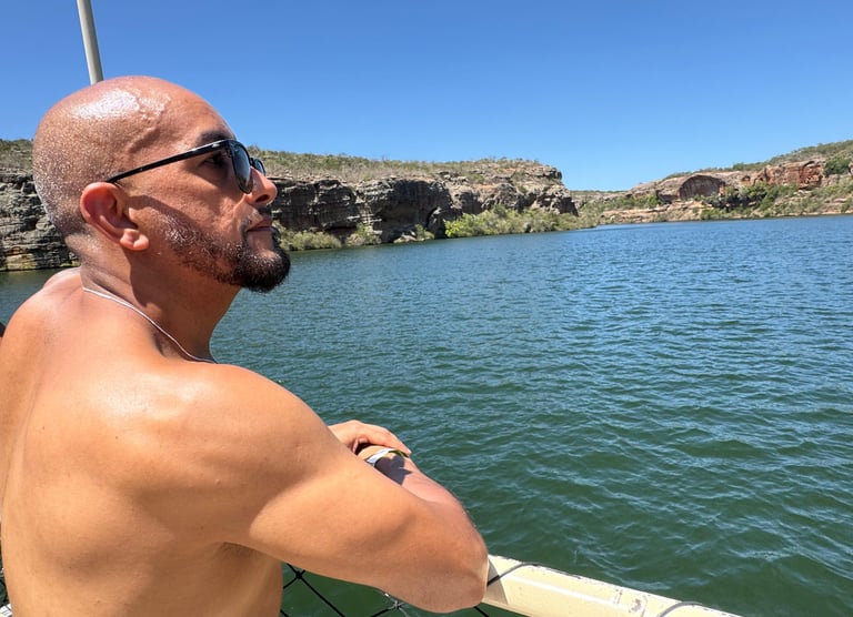 Navegar pelo Rio São Francisco foi uma das experiências mais inesquecíveis da viagem. As águas verdes e calmas contrastam com as formações rochosas imponentes, criando um cenário que parece cinematográfico. Durante o percurso, tivemos a oportunidade de mergulhar em pontos seguros e aproveitar a grandiosidade do lugar.